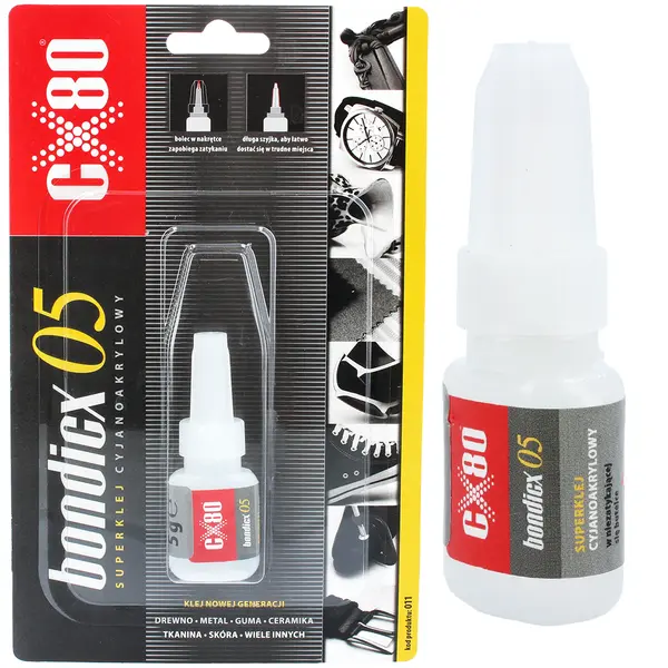 Klej cyjanoakrylowy CX80 pozwala na szybkie połączenie dowolnych elementów. Jednoskładnikowy preparat błyskawicznie tworzy spoinę, dzięki czemu nie musisz długo czekać na działanie preparatu. W zależności od rodzaju materiału, utwardzenie następuje w kilka lub kilkanaście sekund.