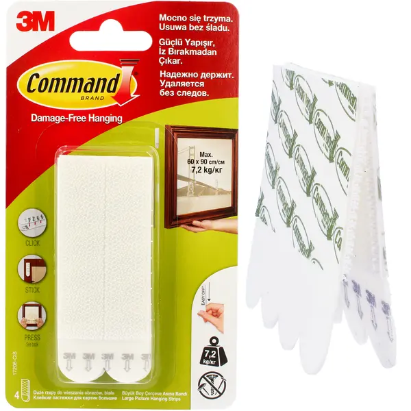 Montaż elementu jest niezwykle łatwy - wystarczy oczyścić powierzchnię, a następnie złączyć ze sobą rzepy i ścisnąć je, aż usłyszysz kliknięcie. Kolejny krok to przyklejenie elementów do obrazu, usunięcie pasków zabezpieczających oraz przyciśnięcie obrazu do ściany.