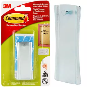Haczyk Command to wyjątkowo łatwy w montażu produkt, który pozwala na błyskawiczną zmianę wystroju pomieszczenia. Element można zamocować na większości powierzchni gładkich takich jak malowane ściany, malowane i lakierowane drewno, gips, szkło, ceramika i tworzywo sztuczne.