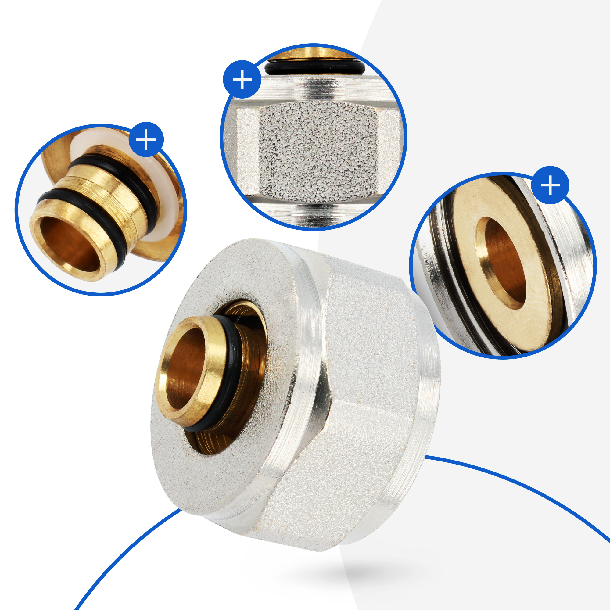 Do produkcji adaptera wykorzystano wytrzymały mosiądz, który nie jest podatny na korodowanie, uszkodzenia mechaniczne oraz szkodliwy wpływ wilgoci i wysokich temperatur. Złączka PEX jest całkowicie rozbieralna, co znacząco ułatwia naprawę czy przebudowę instalacji centralnego ogrzewania. Adapter zbudowany jest z mosiężnej, gwintowanej nakrętki, pierścienia zaciskowego, trzpienia wyposażonego w o-ringi oraz przekładki dielektrycznej.