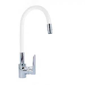 Korpus baterii został wykonany z najwyższej jakości mosiądzu. Materiał ten jest odporny na szkodliwe działanie wilgoci, wysokich temperatur oraz środków chemicznych wykorzystywanych do czyszczenia powierzchni kranu. Warstwa chromu, którą została pokryta bateria zlewozmywakowa łamana, zapewnia jej dodatkową ochronę przed osadzaniem się kamienia oraz uszkodzeniami mechanicznymi. Kolorowa wylewka wyprodukowana jest z rurki PE w oplocie stalowym. Zastosowana została na niej powłoka silikonowa, dzięki czemu nie jest podatna na pęknięcia, złamania oraz odkształcenia.