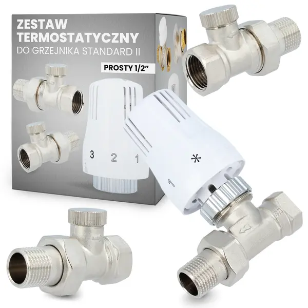 Zestaw termostatyczny to produkt, dzięki któremu obsługa grzejnika stanie się niezwykle prosta. Komplet zawiera precyzyjny zawór regulujący, wygodną głowicę termostatyczną i skuteczny zawór odcinający. Dzięki tym elementom bez problemu dostosujesz temperaturę kaloryfera oraz zadbasz o bezpieczeństwo systemu. Dodatkowo obniżysz także koszty za ogrzewanie.