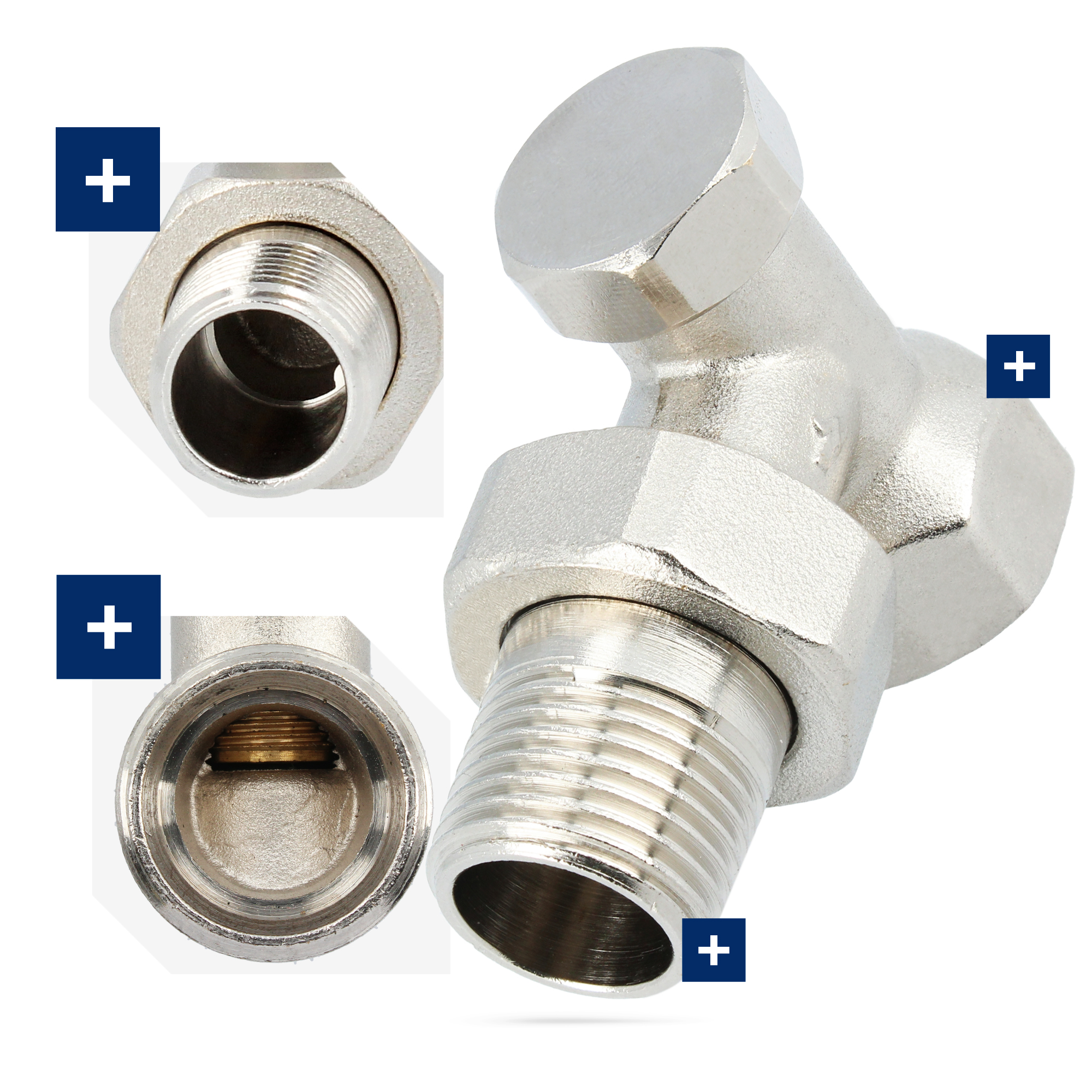 Zawór został wykonany z odpornego mosiądzu, który jest trwały i odporny na korozję. Niklowana powłoka zapewnia wysoką estetykę, dzięki czemu element dopasowuje się do pozostałych części grzewczych.