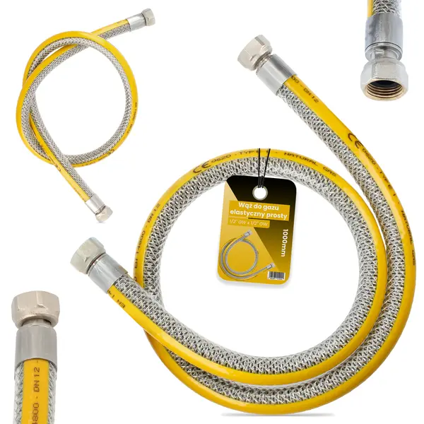 Wąż do gazu elastyczny prosty 1/2'' GW x 1/2 GW'' 1000 mm