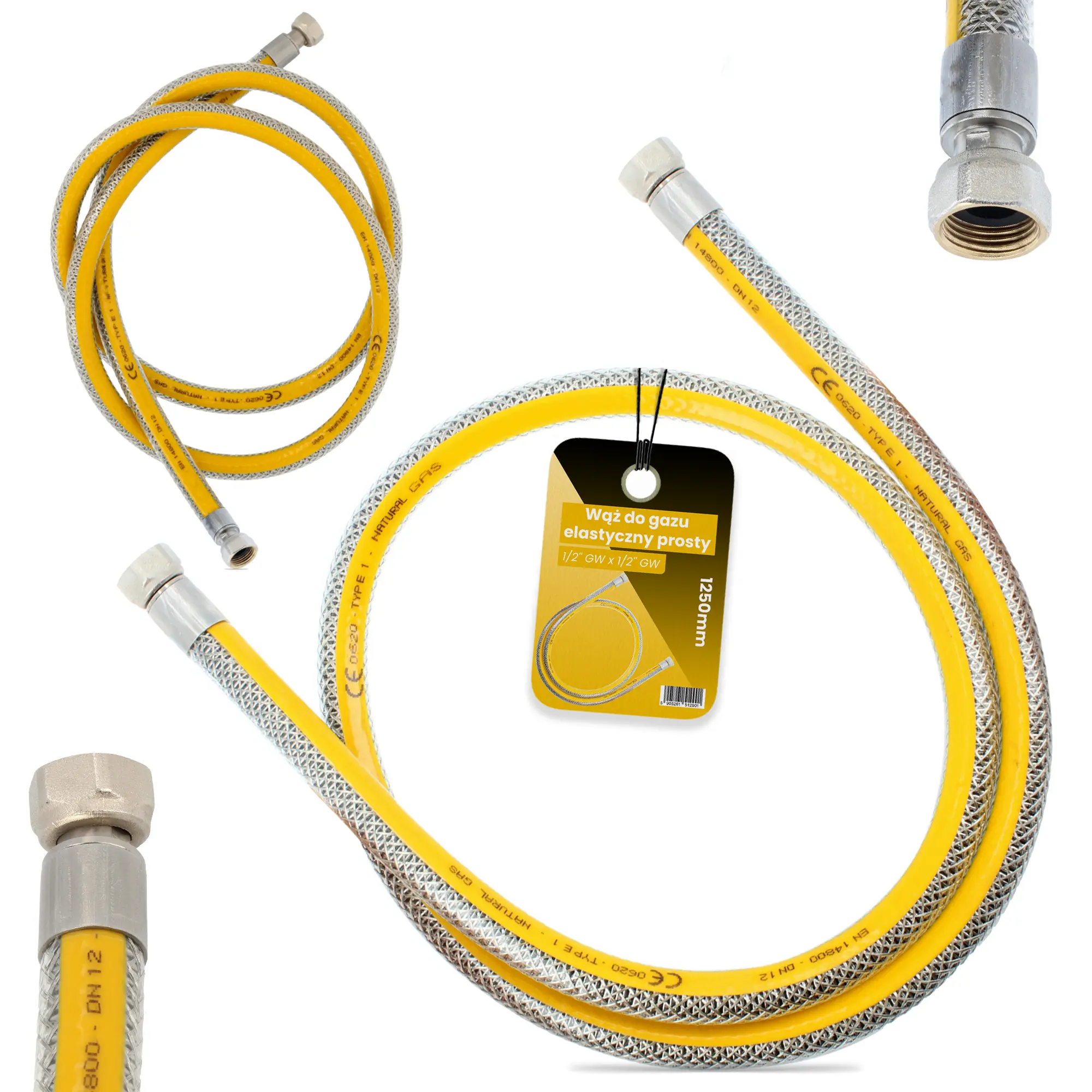 Wąż do gazu elastyczny prosty 1/2'' GW x 1/2 GW'' 1250 mm