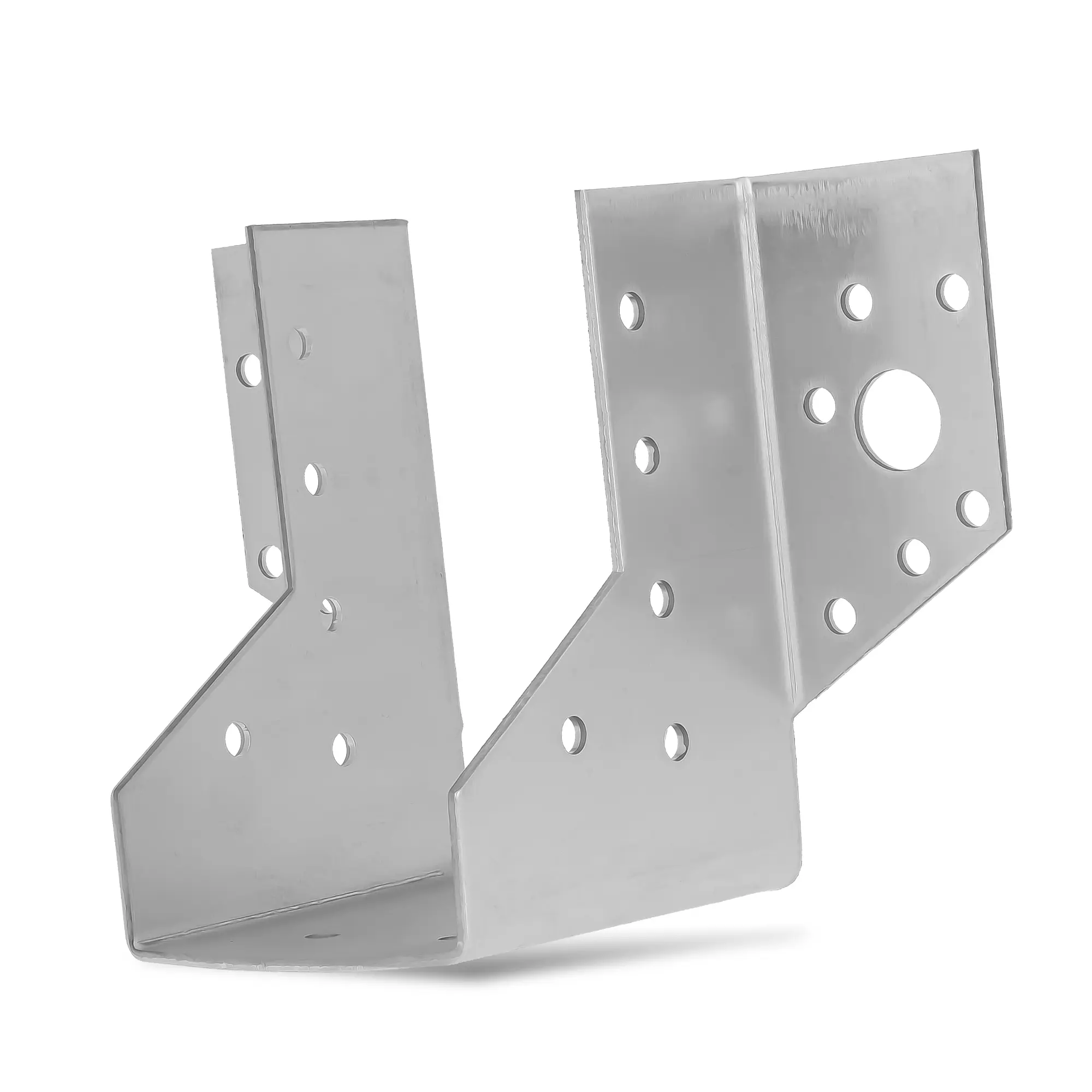 Wieszak można zamocować za pomocą licznych otworów w dwóch różnych średnicach, Dzięki temu możesz wykorzystać wkręty różnej grubości, wzmacniając całą konstrukcję. Prostopadłą belkę należy umieścić w wieszaku i przymocować za pomocą otworów znajdujących się w dolnej części. Tak utworzona konstrukcja jest trwała i stabilna.