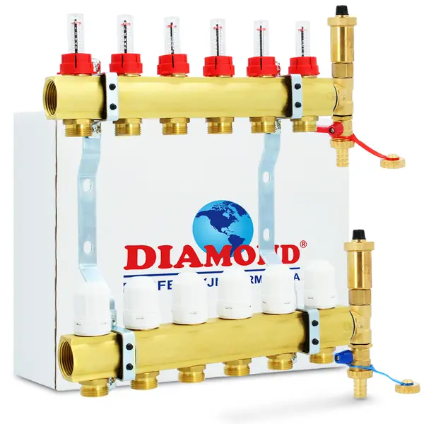 Rozdzielacz do podłogówki mosiężny z zestawem odpowietrzającym 6 obwodów