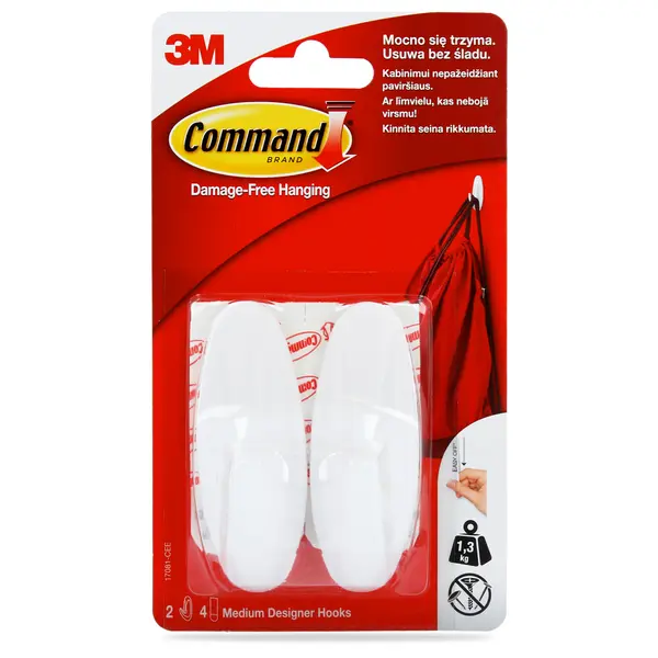 Haczyk pozwala na zawieszenie przedmiotów o wadze do 1,3 kg. Dzięki temu możesz powiesić ręczniki, akcesoria łazienkowe, utensylia kuchenne, niewielkie narzędzia oraz wiele innych drobnych przedmiotów.