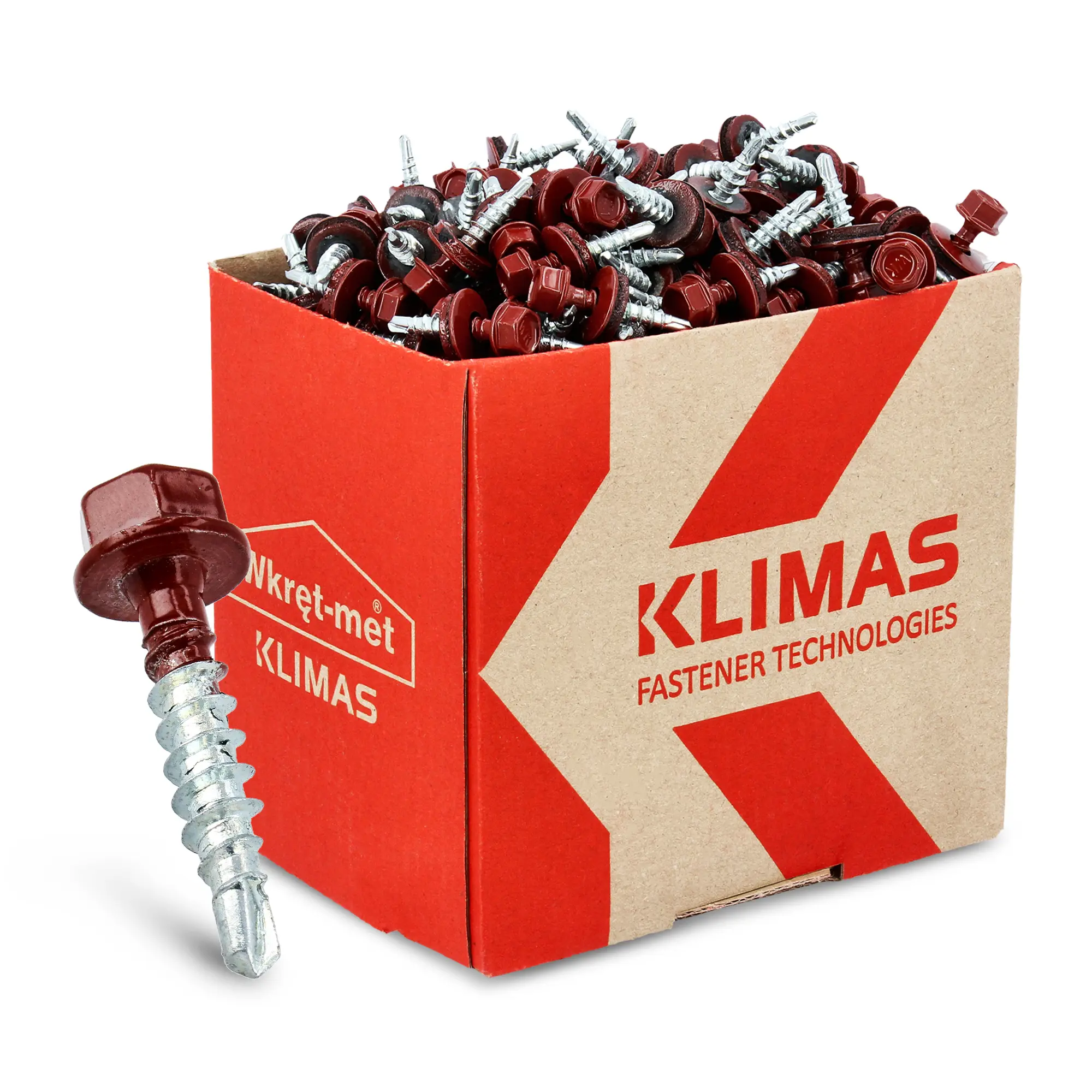 Wkręty farmerskie samowiercące z podkładką EPDM 4,8 x 25 mm wiśniowe RAL 3009