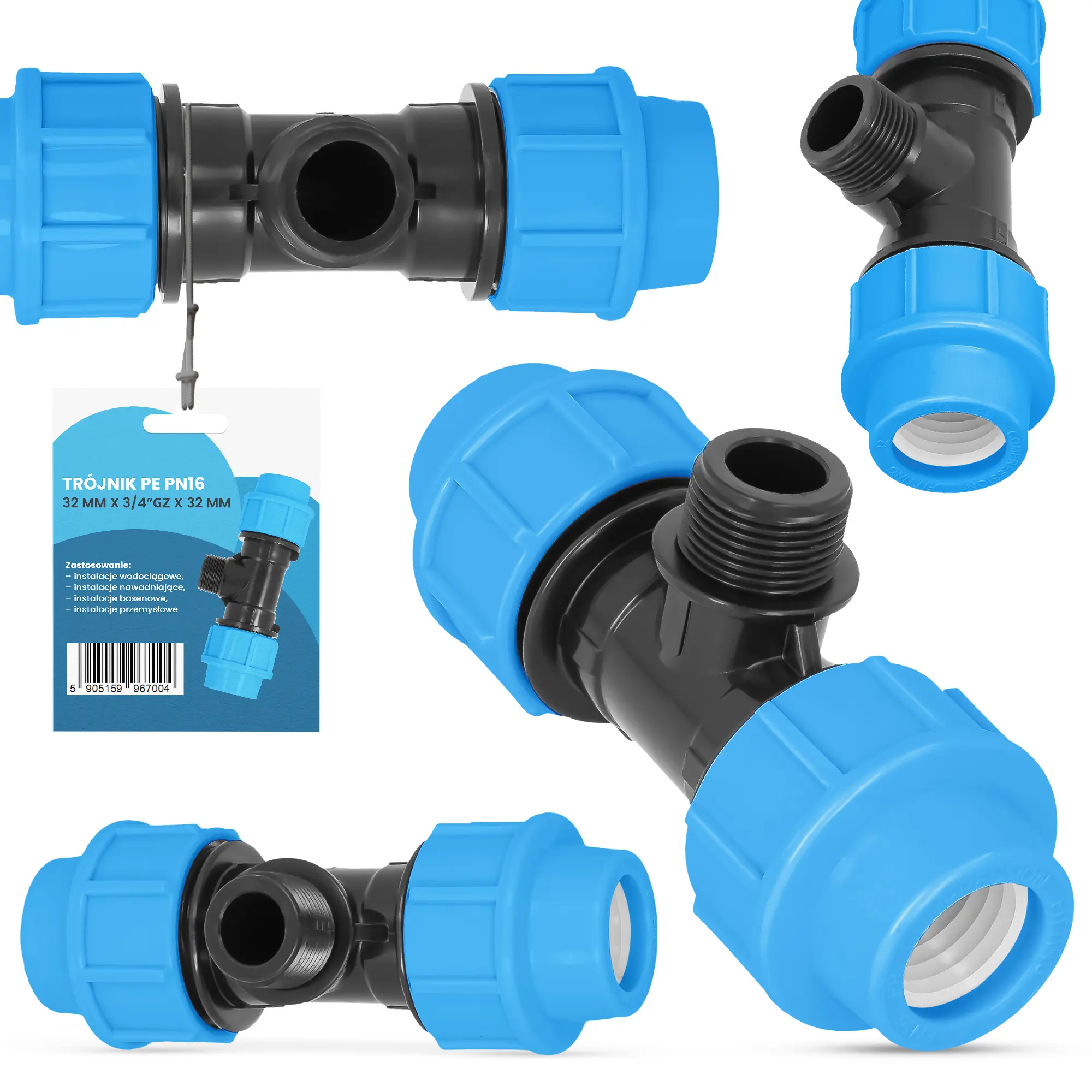 Trójnik PE PN16 32 mm x 3/4'' GZ x 32 mm