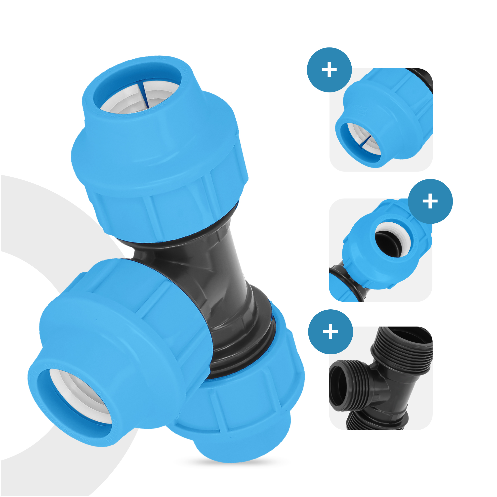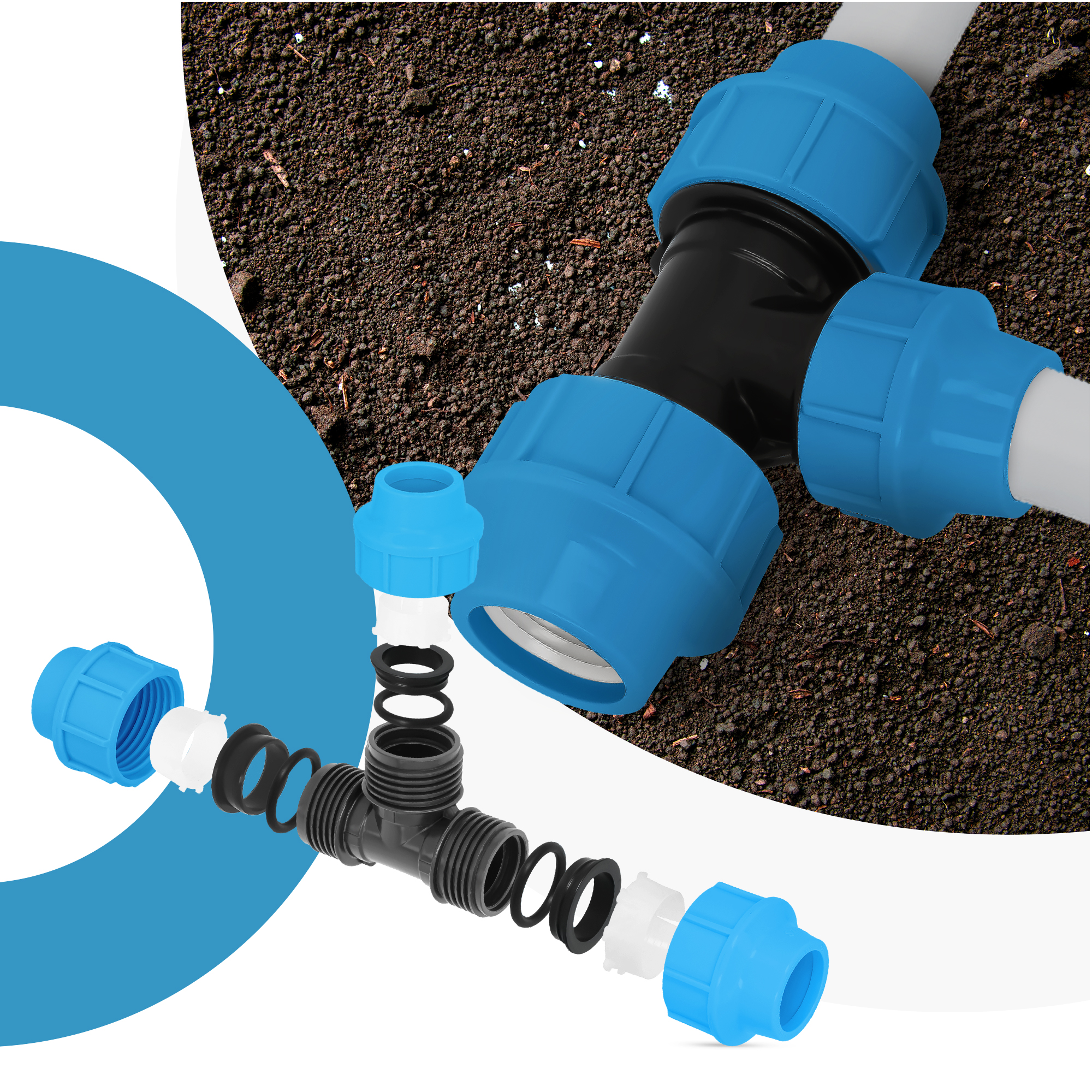 Trójnik PE to złączka wykorzystywana w systemach wodnych i nawadniających. Element ten ma wyjątkowo uniwersalne zastosowanie, co sprawia, że wykorzystuje się go w instalacjach naziemnych i podziemnych.