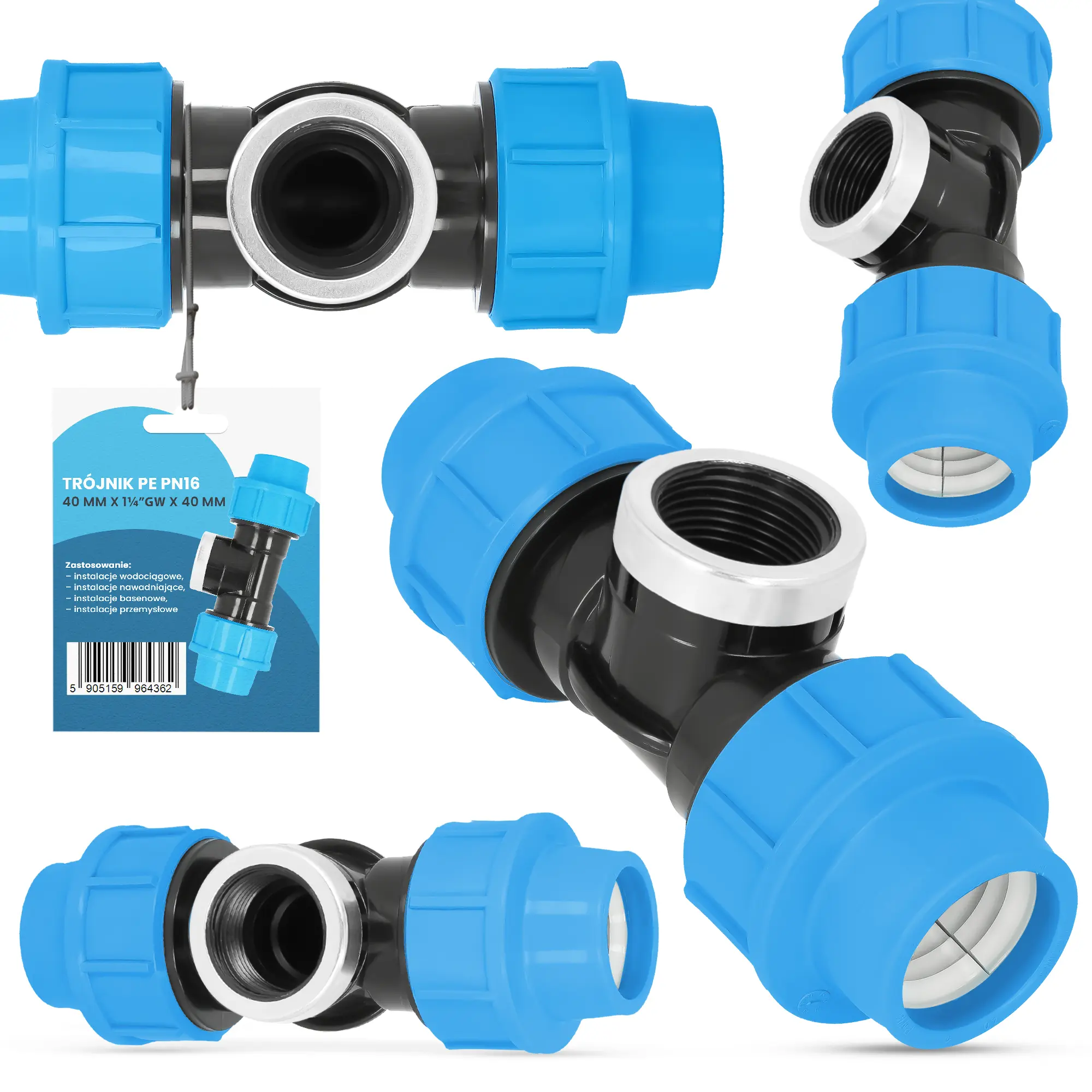 Trójnik PE to złączka wykorzystywana w systemach wodnych i nawadniających. Element ten ma wyjątkowo uniwersalne zastosowanie, co sprawia, że wykorzystuje się go w instalacjach naziemnych i podziemnych.