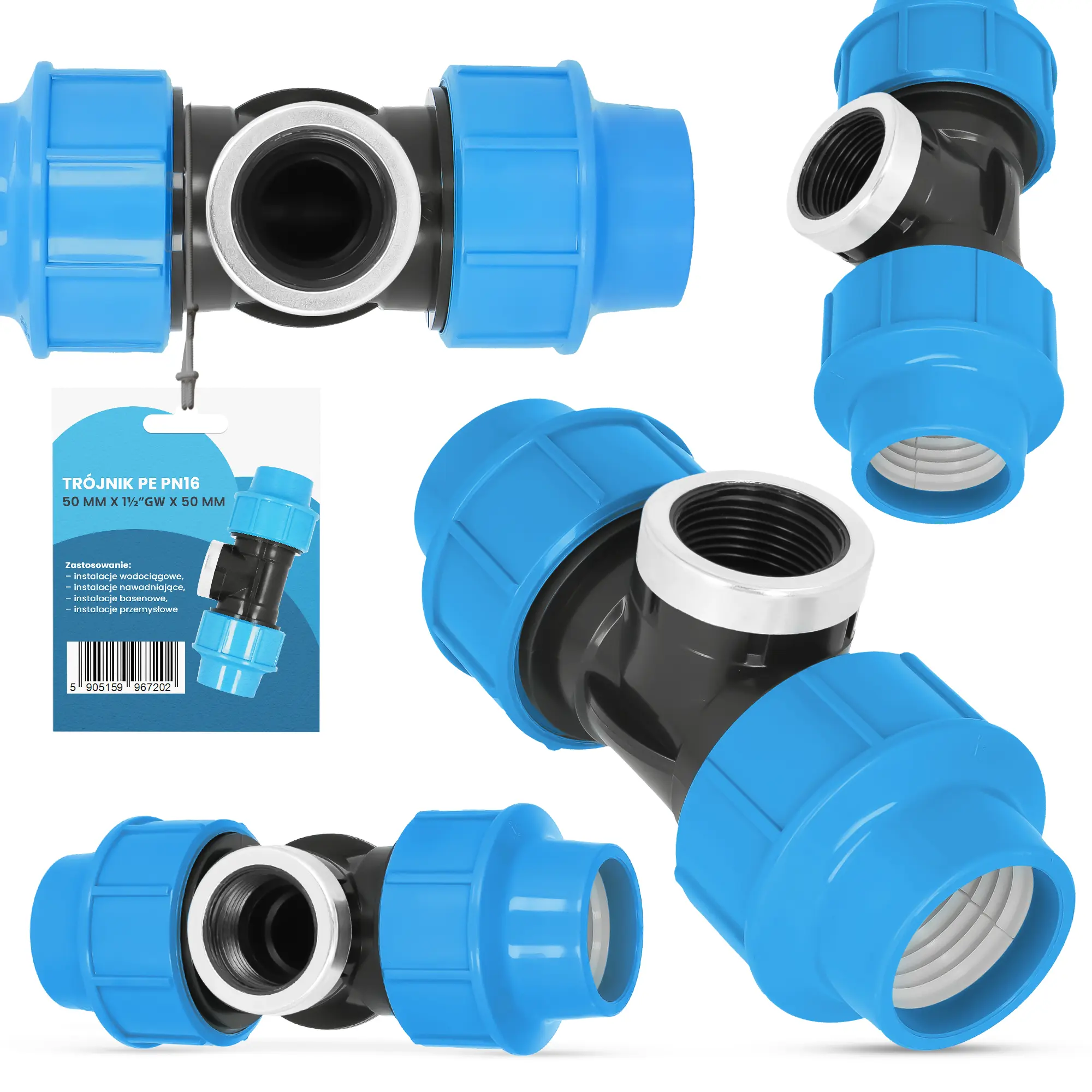 Trójnik PE PN16 50 mm x 1 1/2'' GW x 50 mm