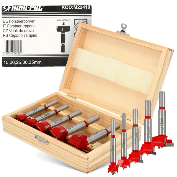 Komplet 5 wierteł do drewna to doskonały produkt, dzięki któremu błyskawicznie wywiercisz precyzyjne otwory. Ostrza na obwodzie wykonane z węglika i tytanu zapewniają dokładne wiercenie bez odprysków.