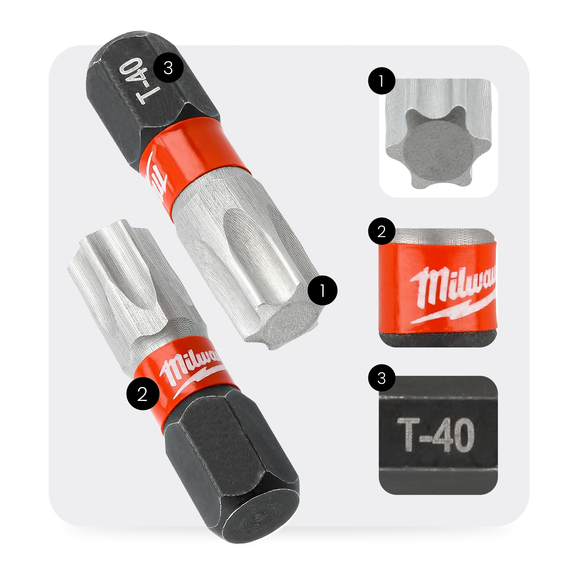 AŻ 30X WIĘKSZA WYTRZYMAŁOŚĆ - bity udarowe Milwaukee SHOCKWAVE™ IMPACT DUTY™ to doskonała odporność i idealne dopasowanie do elektronarzędzi tej marki.