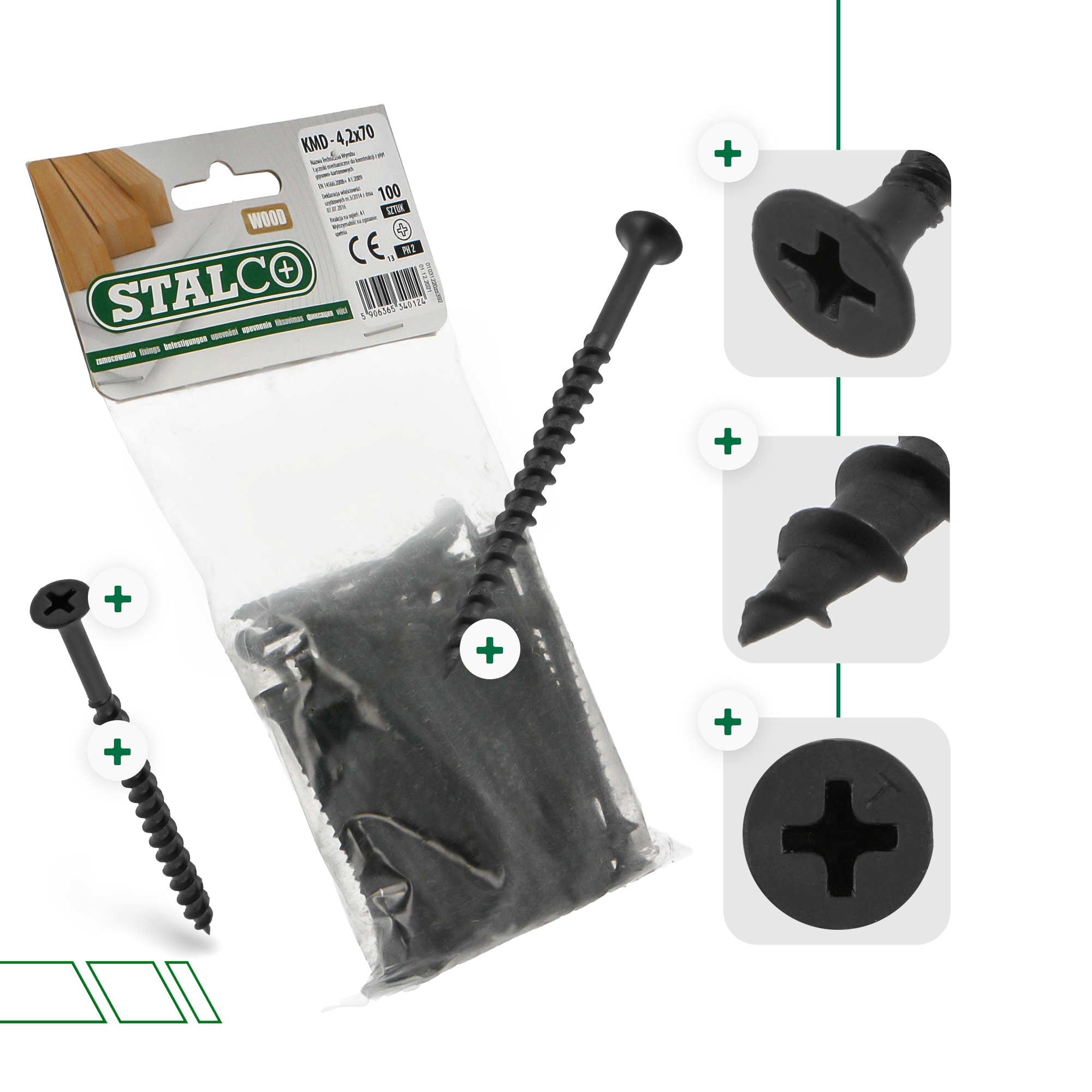 Wkręty fosfatowane marki STALCO pozwalają na skuteczny i estetyczny montaż płyt gipsowo-kartonowych. Dzięki nim możesz wykonać mocowanie do podłoży drewnianych i drewnopodobnych.