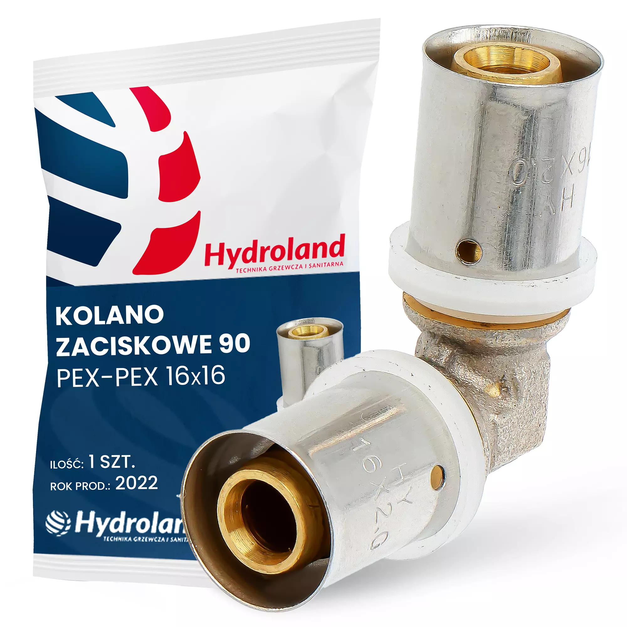 Kolano zaprasowywane PEX marki Hydroland to wysokiej jakości produkt, który sprawdza się w tworzeniu instalacji.