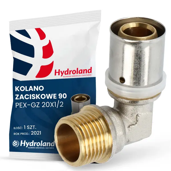 Kolano zaprasowywane PEX marki Hydroland to wysokiej jakości produkt, który sprawdza się w tworzeniu instalacji.