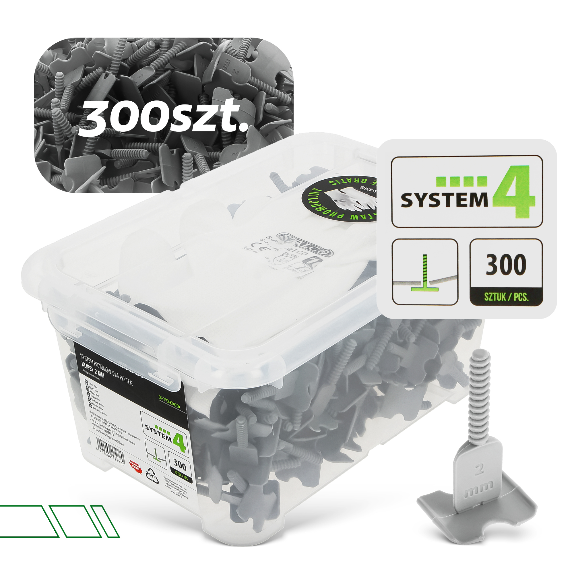 Zestaw klipsów to doskonałe rozwiązanie na idealnie równo ułożone płytki - bez wysiłku. Aż 300 sztuk klipsów pozwala na położenie kafelków na naprawdę dużej powierzchni. To idealny zestaw zarówno dla profesjonalistów, jak i osób układających kafelki jednorazowo, np. podczas remontu.