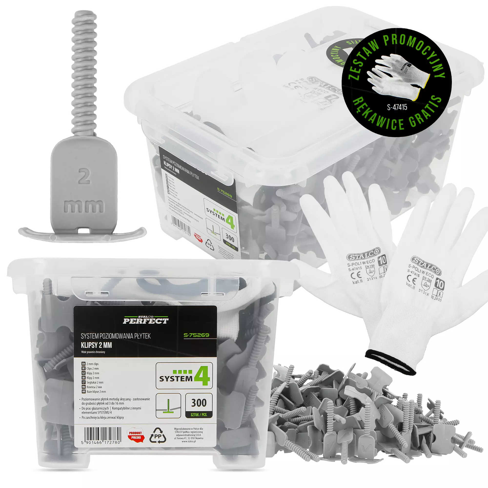 Do zestawu dołączono rękawice gratis. Sprawdzą się one podczas układania płytek oraz innych prac budowlanych.