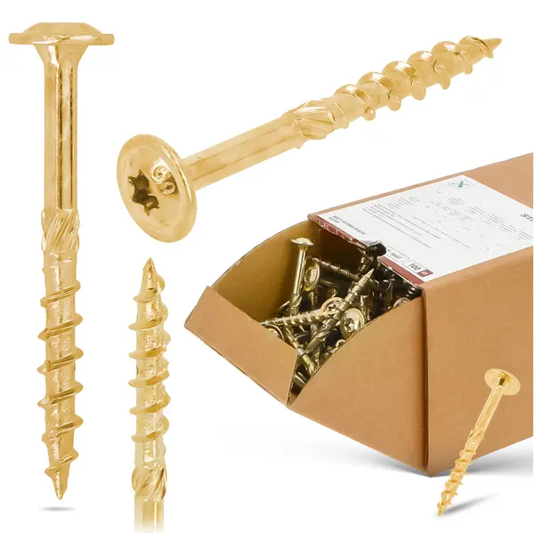 We wkrętach zastosowano podwójny niepełny gwint oraz karby tnące. Dzięki temu element dokładnie zagłębia się w drewnie. Długi frez sprawia, że do wkręcania potrzebna jest znacznie mniejsza siła.