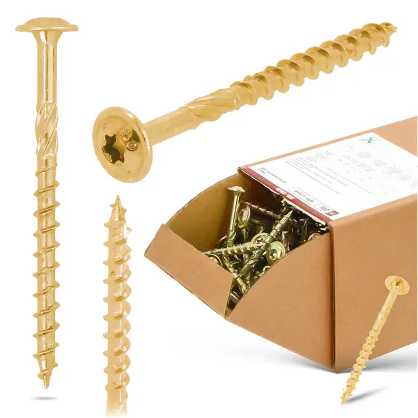 We wkrętach zastosowano podwójny niepełny gwint oraz karby tnące. Dzięki temu element dokładnie zagłębia się w drewnie. Długi frez sprawia, że do wkręcania potrzebna jest znacznie mniejsza siła.