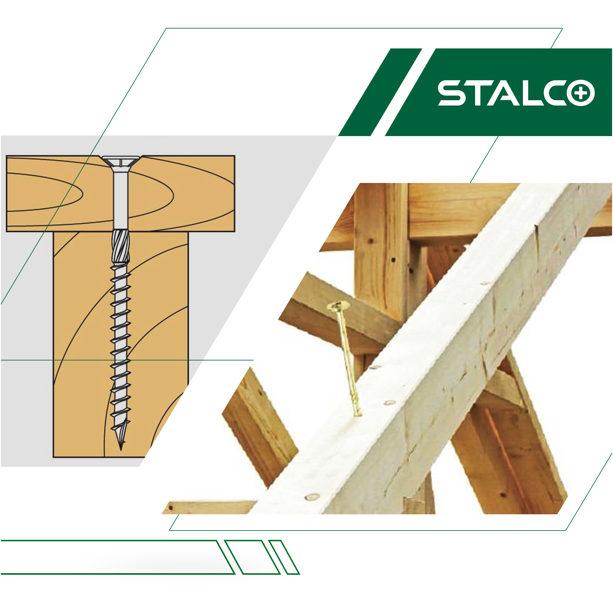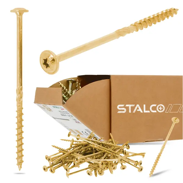 We wkrętach zastosowano podwójny niepełny gwint oraz karby tnące. Dzięki temu element dokładnie zagłębia się w drewnie. Długi frez sprawia, że do wkręcania potrzebna jest znacznie mniejsza siła.