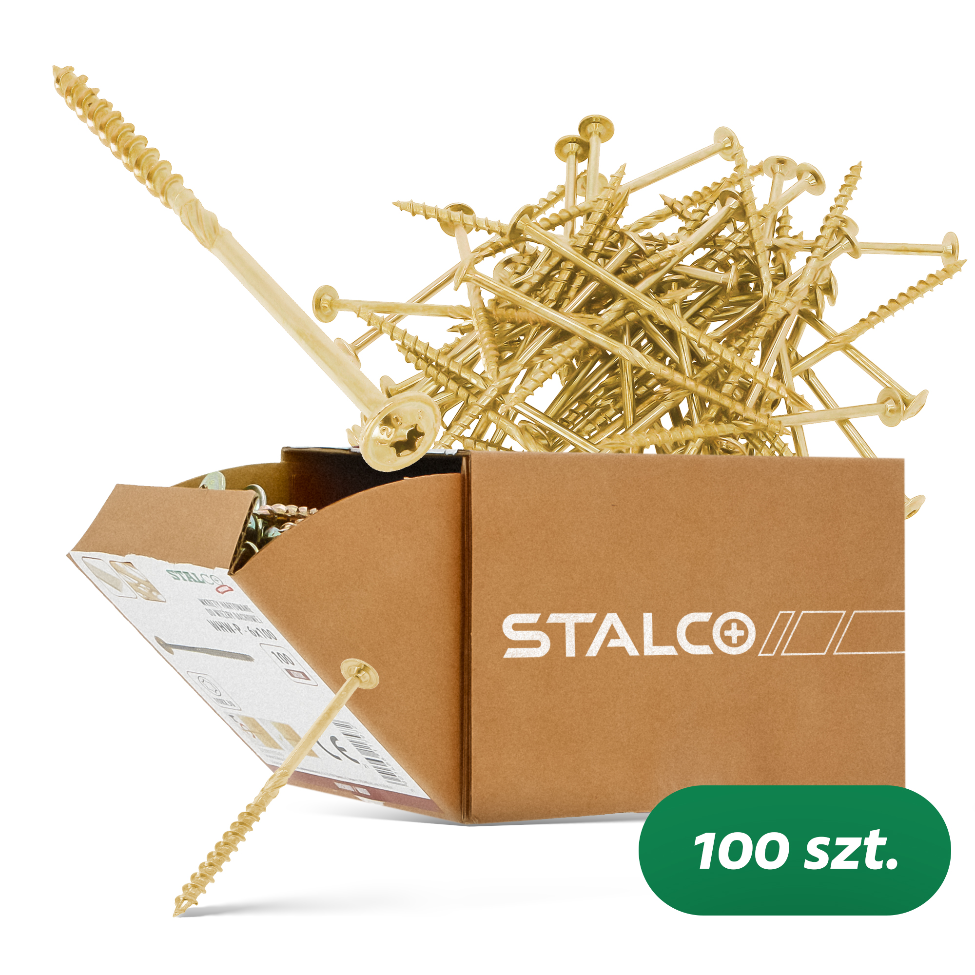 Wkręty hartowane wyposażone w łeb podkładkowy to wyjątkowo trwałe elementy. Warstwa żółtego ocynku zabezpiecza przed uszkodzeniami i korozją.