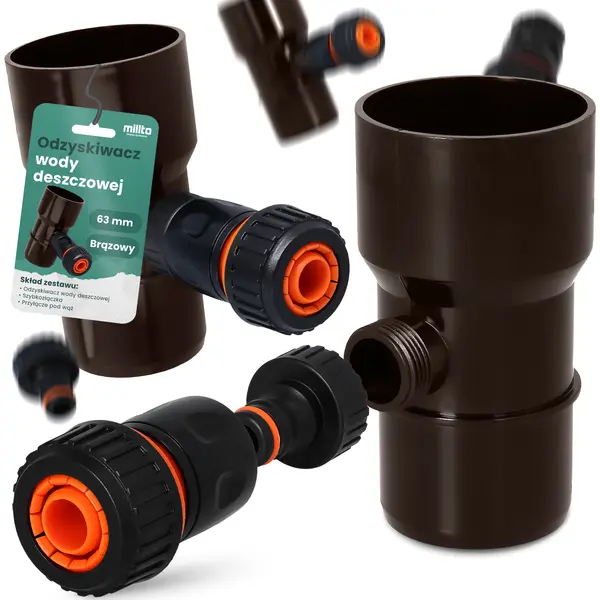 dzyskiwacz wody deszczowej 63 mm x 3/4'' GZ brązowy z przyłączem pod szybkozłączke 3/4'' GW x SZ i szybkozłączka 3/4'' W x SZ