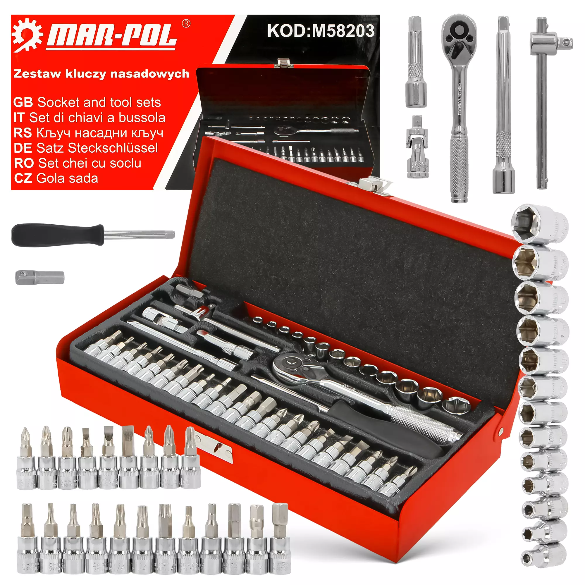 Komplet kluczy nasadowych zawiera aż 42 różne elementy, aby nigdy nie zabrakło Ci żadnego podczas pracy. Dzięki temu większość wykonywanych zadań staje się znacznie łatwiejsza.