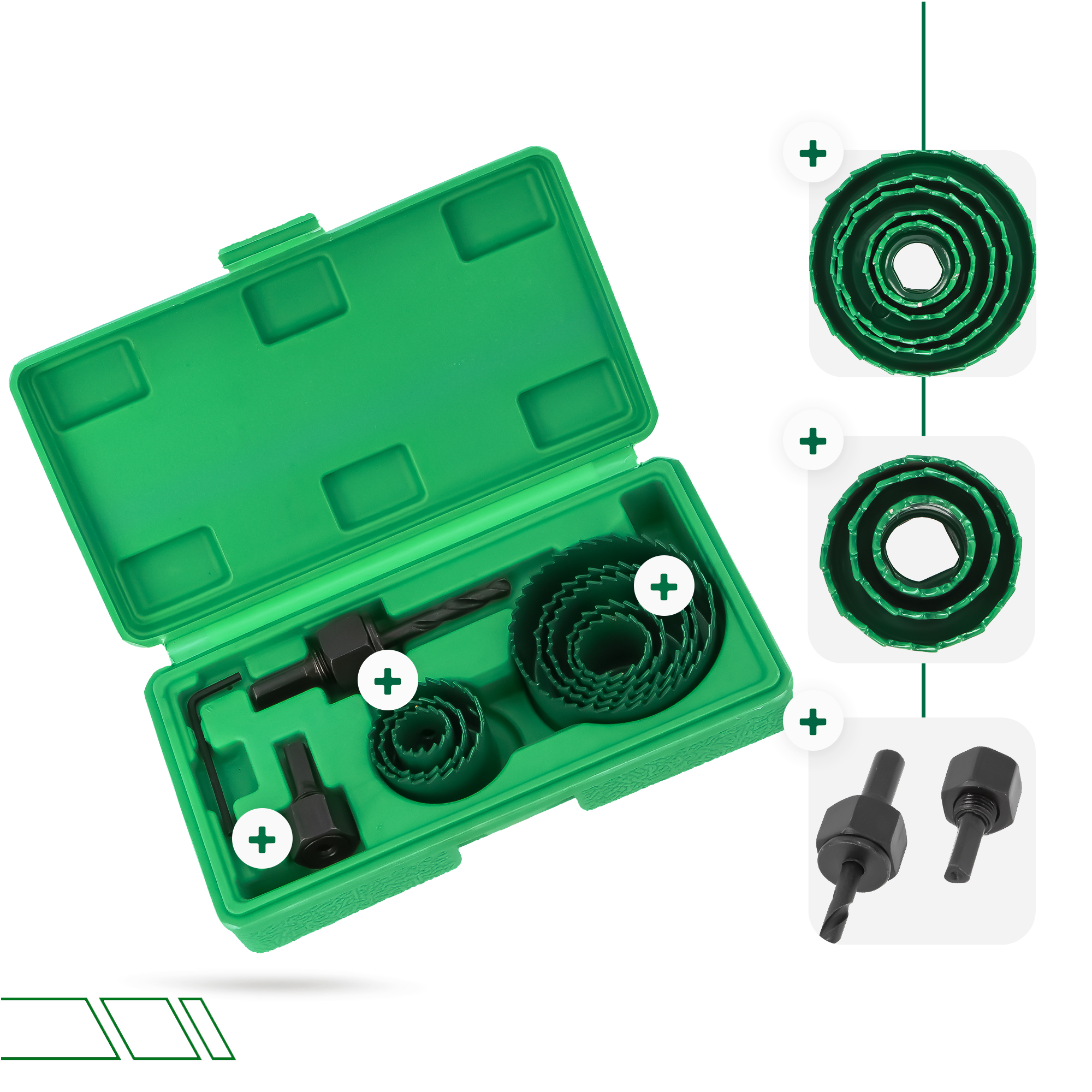 Zestaw zawiera aż 8 trwałych i skutecznych otwornic, uchwyty mocujące, wiertło naprowadzające oraz klucz do mocowania wiertła. To wyczerpujący komplet, który pozwoli Ci na bezproblemowe wykonywanie otworów w drewnie.