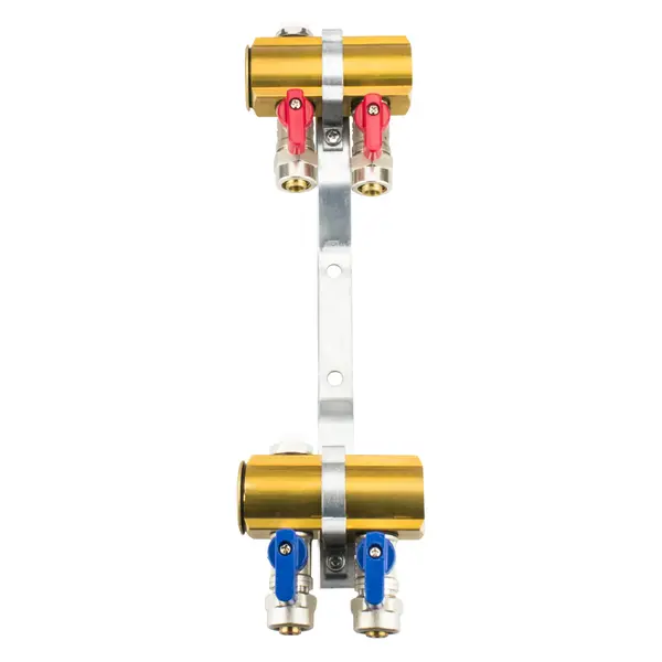Rozdzielacz znajduje zastosowanie w instalacjach ogrzewania podłogowego, jak również w systemach C.O. Urządzenie należy stabilnie osadzić w specjalnej szafce - w pozycji pionowej. Służą do tego stalowe uchwyty, które należy przykręcić do wewnętrznej ściany szafki.