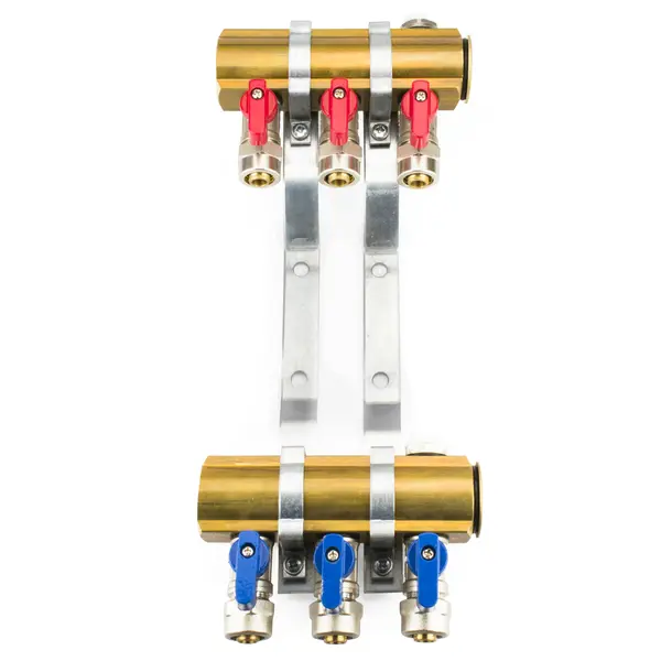 Rozdzielacz znajduje zastosowanie w instalacjach ogrzewania podłogowego, jak również w systemach C.O. Urządzenie należy stabilnie osadzić w specjalnej szafce - w pozycji pionowej. Służą do tego stalowe uchwyty, które należy przykręcić do wewnętrznej ściany szafki.