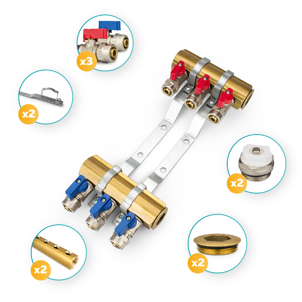 Rozdzielacz służy do połączenia wszystkich obwodów instalacji grzewczej w jeden system, którego zadaniem jest rozdzielanie i równomierne rozprowadzanie ciepłej wody do wszystkich pętli instalacji.