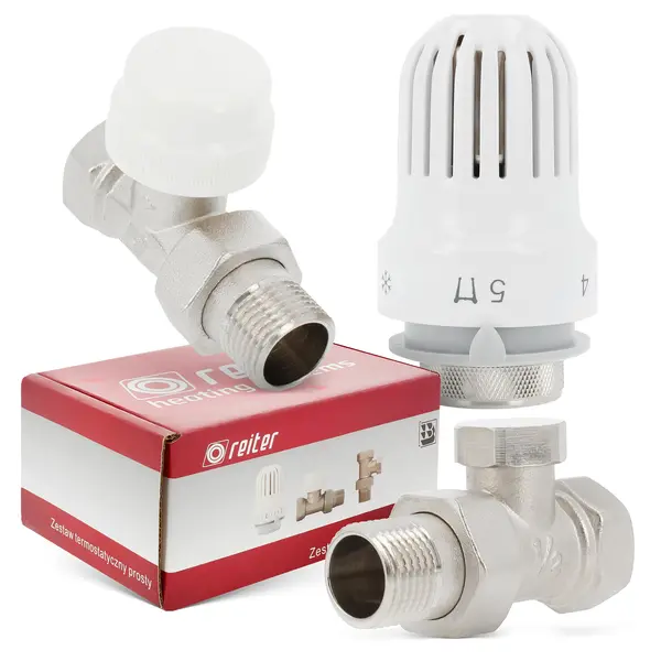 Zestaw termostatyczny odpowiada za regulację temperatury grzejnika. Dzięki wygodnej głowicy sterowanie poziomem ciepła przebiega szybko i sprawnie.
