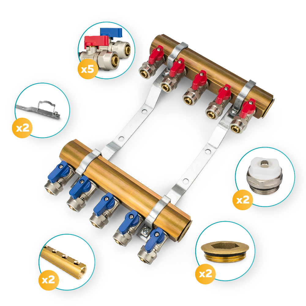 Rozdzielacz służy do połączenia wszystkich obwodów instalacji grzewczej w jeden system, którego zadaniem jest rozdzielanie i równomierne rozprowadzanie ciepłej wody do wszystkich pętli instalacji.