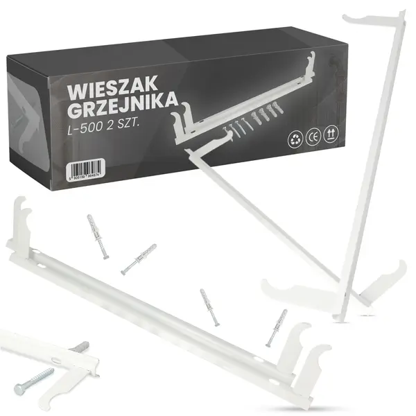 Wieszak jest elementem, który umożliwia stabilne osadzenia wymiennika cieplnego na ścianie. Wspornik stanowi solidną podstawę dla większości standardowych kaloryferów dostępnych na rynku.