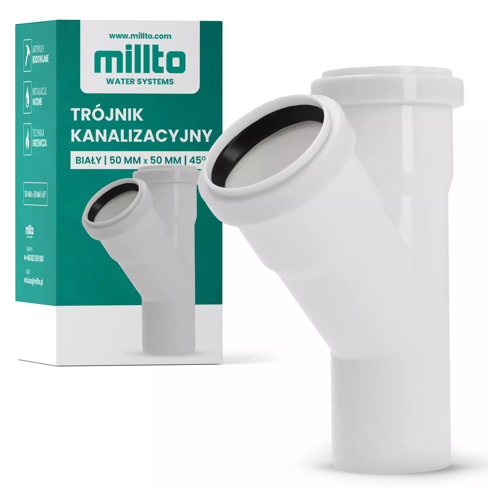 Trójnik kanalizacyjny wykonano z trwałego polipropylenu. Materiał ten zapewnia odporność na uszkodzenia mechaniczne, środki chemiczne, wilgoć, korozję i skrajne temperatury. To element, który posłuży na długie lata.