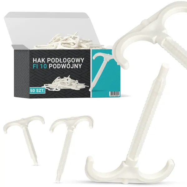 Hak jest produktem przeznaczonym jest do mocowania rur i przewodów instalacyjnych pod powierzchnią posadzek w pomieszczeniach domowych. Element ten gwarantuje stabilne osadzenie rur i kabli w podłodze, a także zapobiega ich przemieszczeniu się.