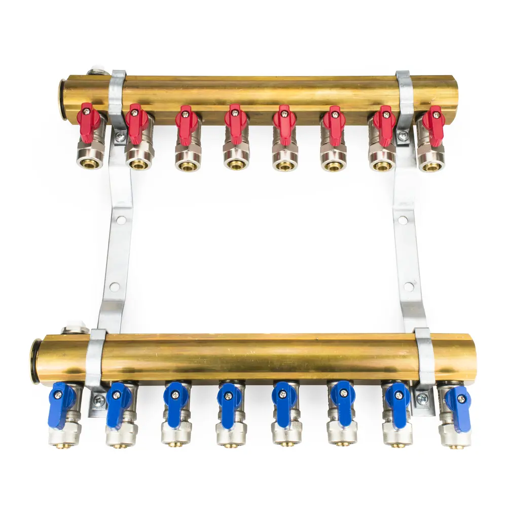 Rozdzielacz CO mosiężny 45 - uzbrojony (zaworki pex, odpowietrzniki na kluczyk) 8 obwodów
