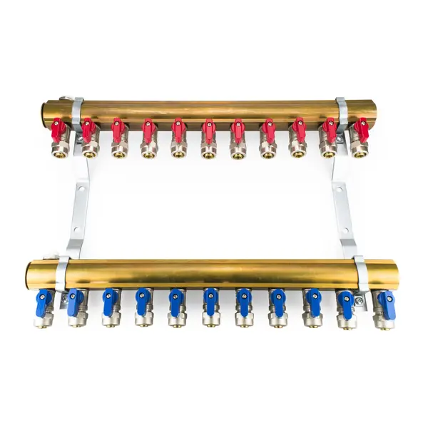 Rozdzielacz służy do połączenia wszystkich obwodów instalacji grzewczej w jeden system, którego zadaniem jest rozdzielanie i równomierne rozprowadzanie ciepłej wody do wszystkich pętli instalacji.
