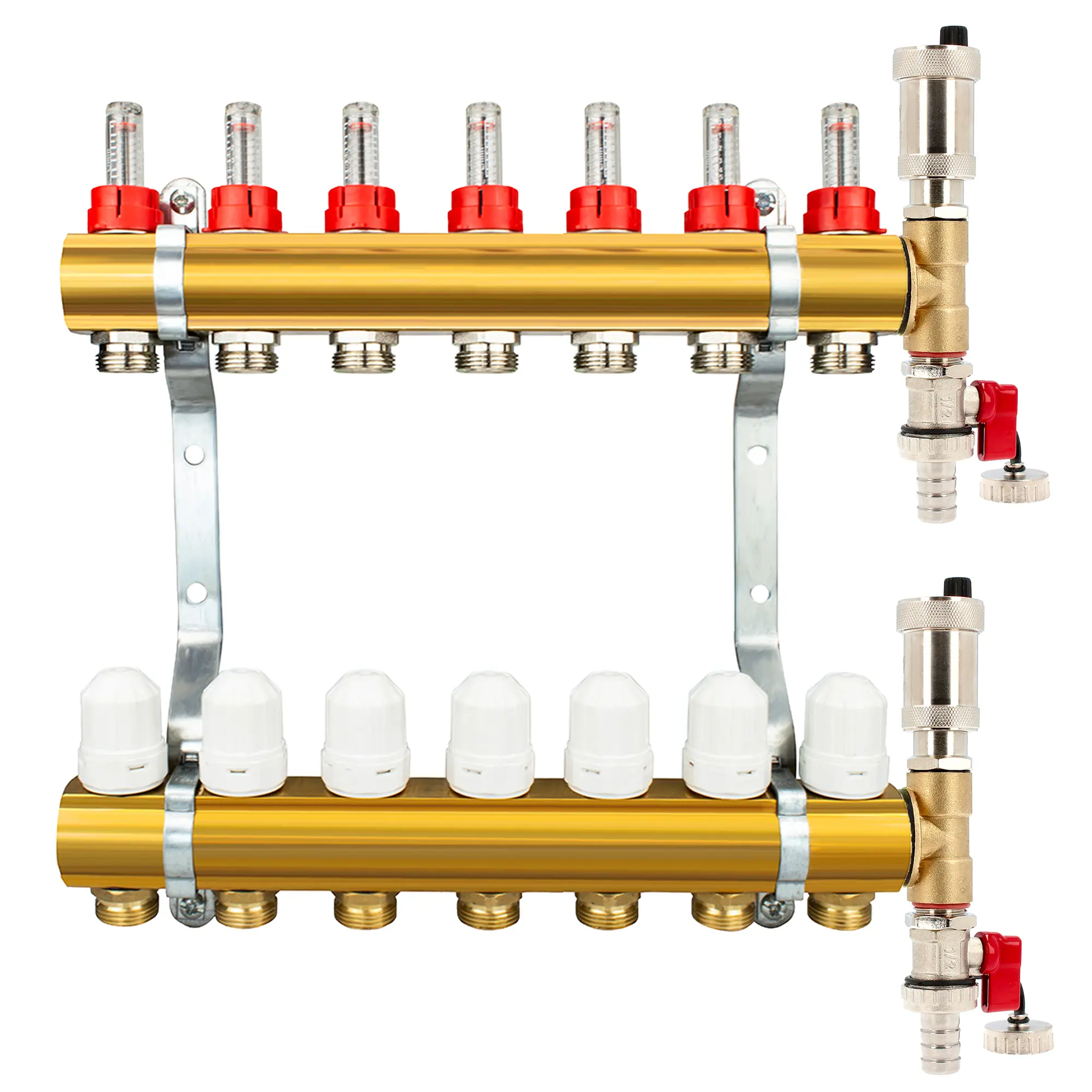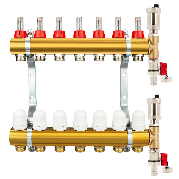 Rozdzielacz podłogowy odpowiada za równomierne rozprowadzanie ciepła do przewodów znajdujących się w systemie grzewczym. Kolektor zapewnia prawidłowy obieg wody w instalacji, dzięki czemu możliwe jest utrzymanie komfortu cieplnego w domu na najwyższym poziomie.