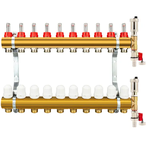 Rozdzielacz podłogowy odpowiada za równomierne rozprowadzanie ciepła do przewodów znajdujących się w systemie grzewczym. Kolektor zapewnia prawidłowy obieg wody w instalacji, dzięki czemu możliwe jest utrzymanie komfortu cieplnego w domu na najwyższym poziomie.