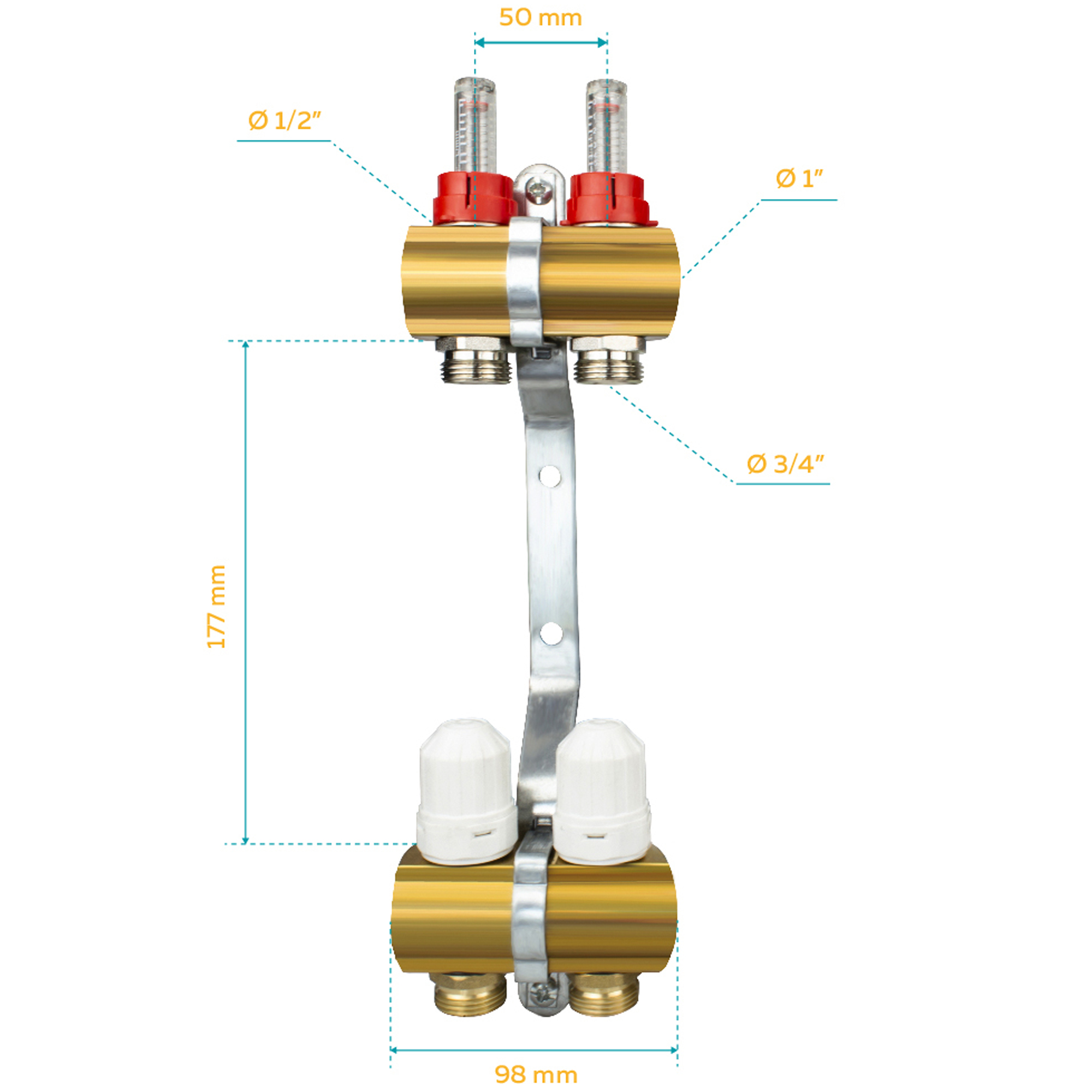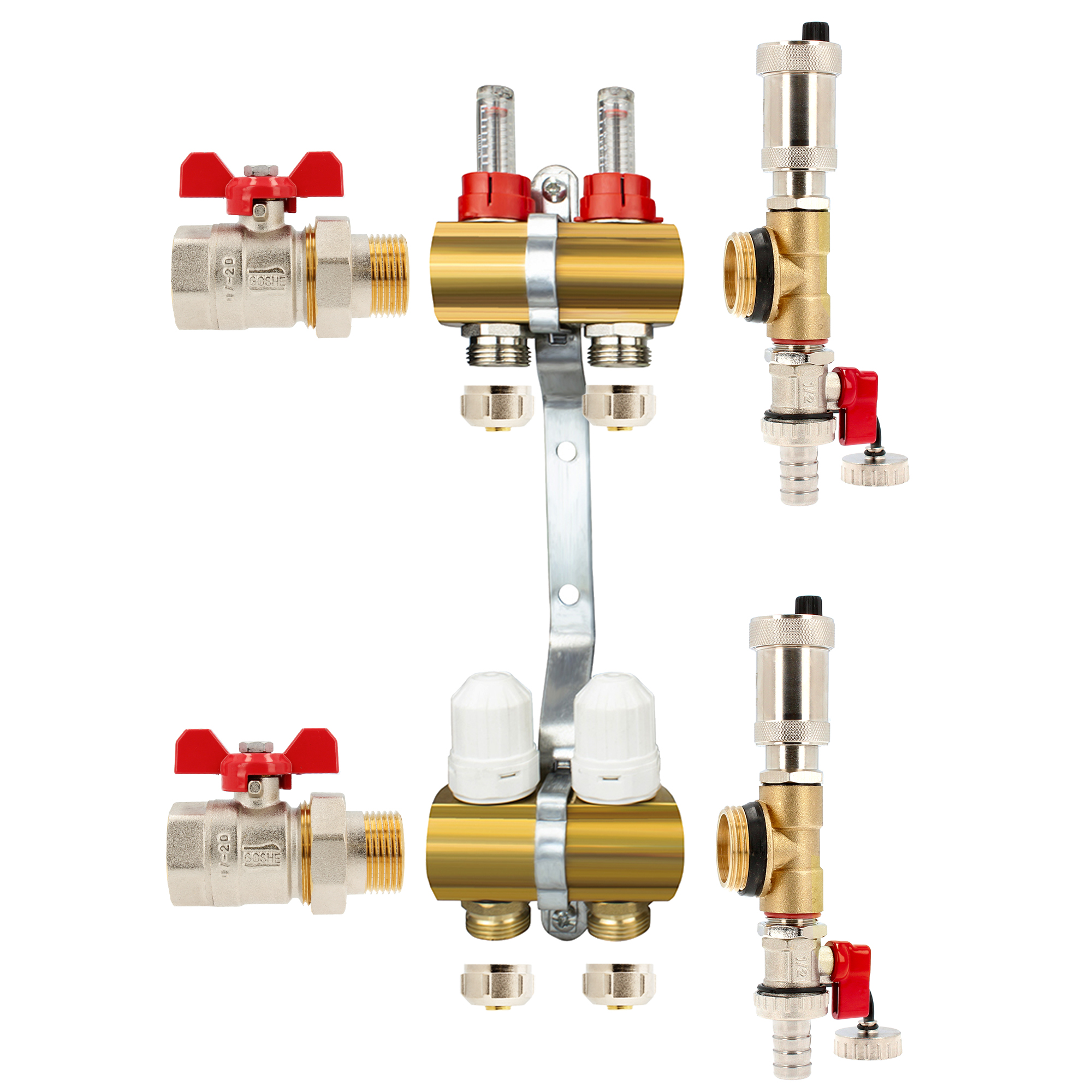 Rozdzielacz CO mosiężny do podłogówki - uzbrojony 2 obwody | Kup Online!
