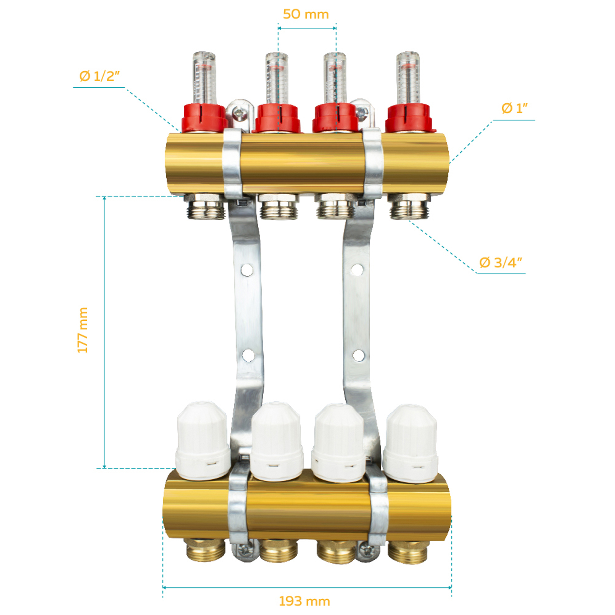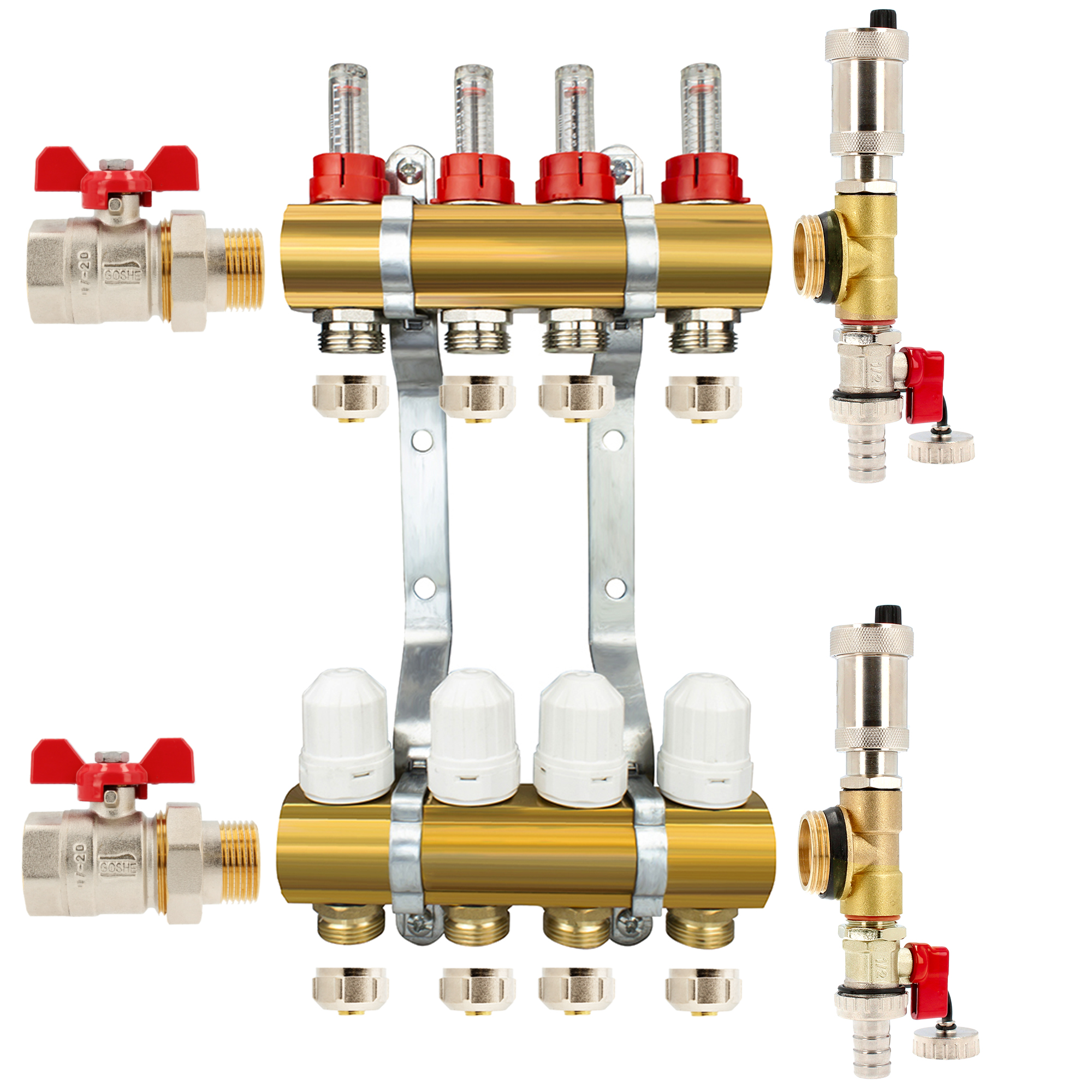 Rozdzielacz CO mosiężny do podłogówki - uzbrojony 4 obwody | Kup Online!
