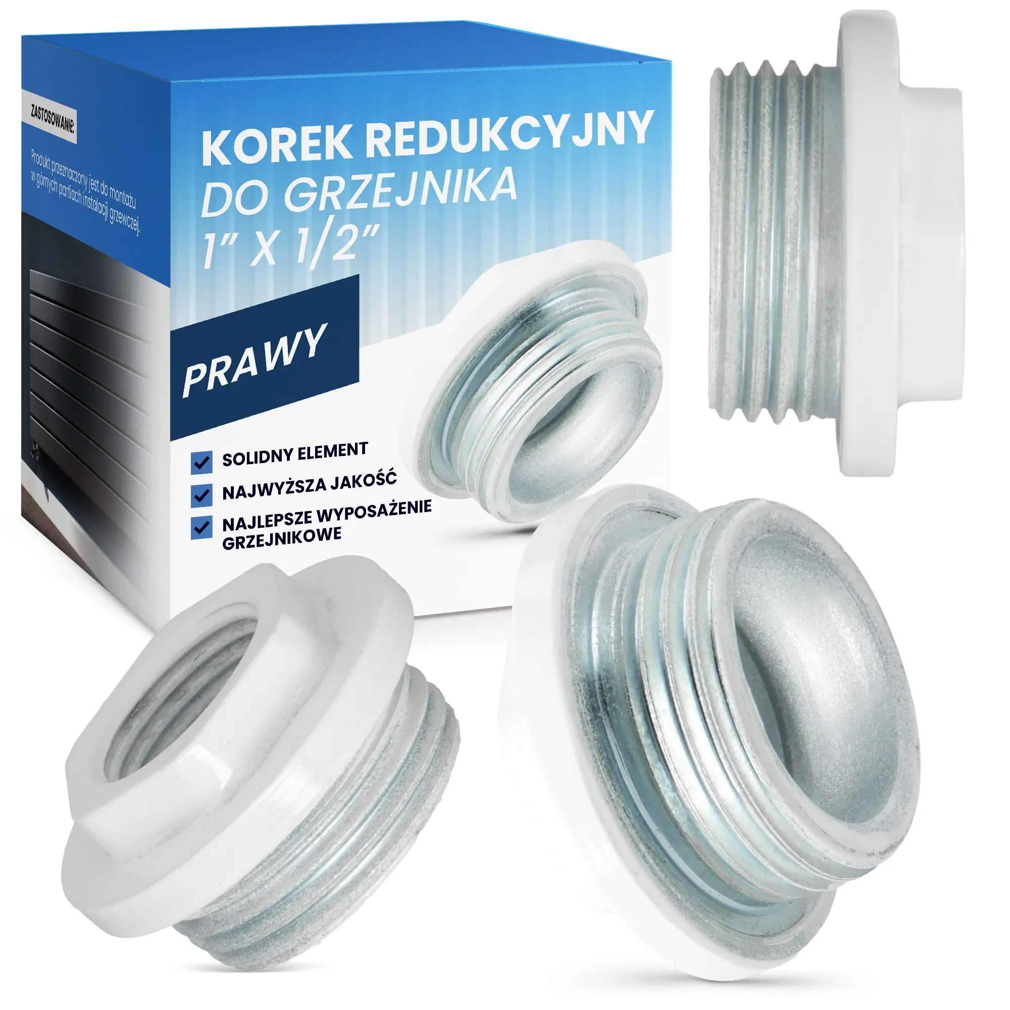 Zaślepka prezentuje się bardzo estetycznie. Ma białe wykończenie, które jest uniwersalne i pasuje praktycznie do każdej armatury grzewczej.