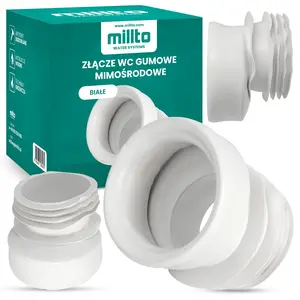 Uniwersalny charakter złącza sprawia, że element jest kompatybilny z rurami WC różnego rodzaju i rozmiaru. Dzięki temu bez problemu dopasujesz element do swojej toalety. Złącze jest białe, dlatego nie będzie się wyróżniać w przypadku większości mis toaletowych.
