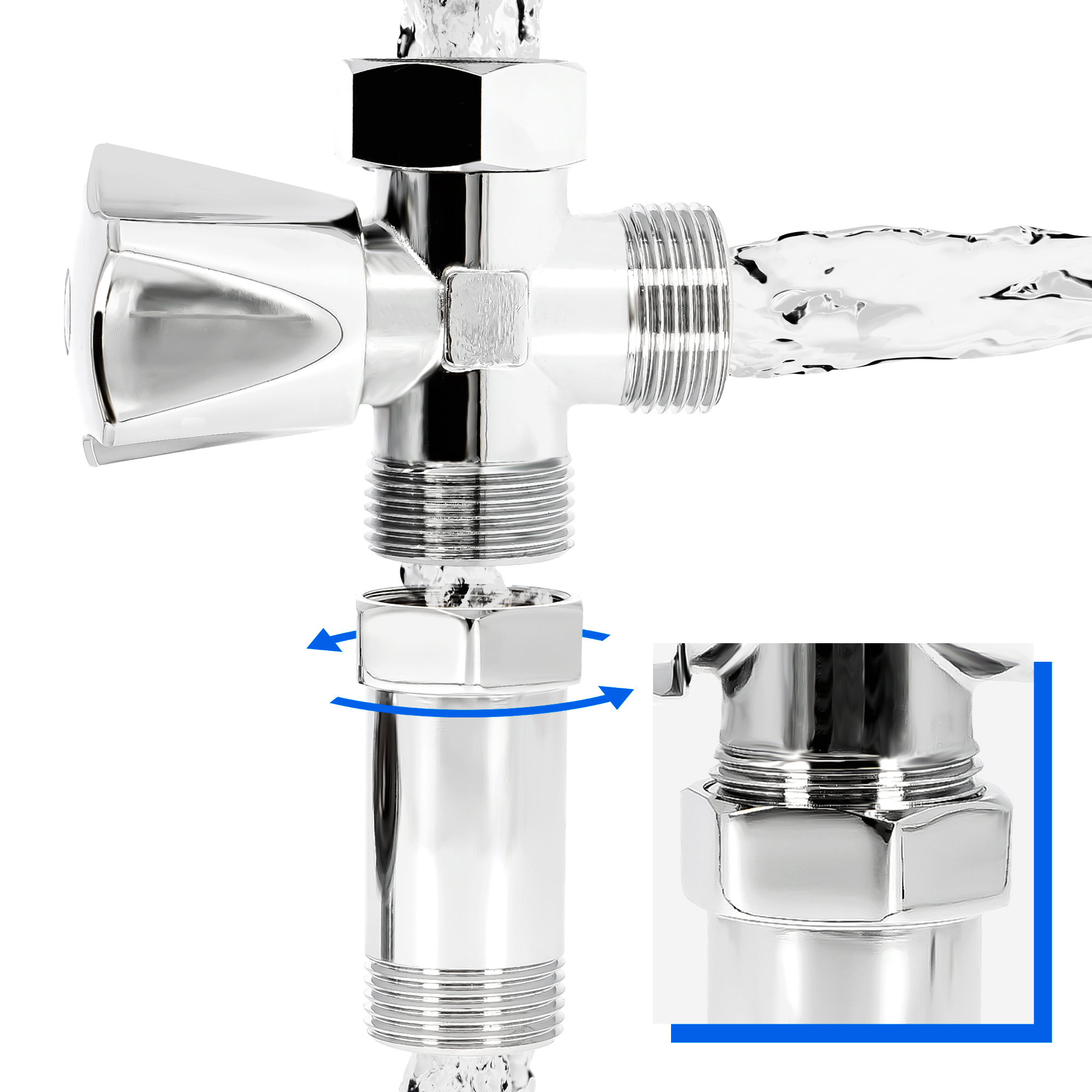 Zawór 3-drogowy grzybkowy to element, który jest wykorzystywany do podłączenia pralki lub zmywarki z instalacją wodną. Został on wyposażony w odkręcaną przedłużkę, dzięki której sam montaż przebiega bardzo sprawnie i jest łatwym zadaniem.